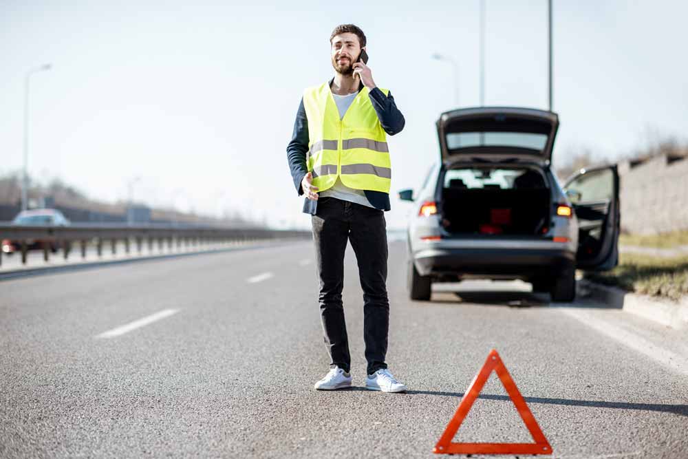 V primeru okvare vozila najprej poskrbite za svojo varnost in varnost potnikov. Vklopite smerne utripalke, vsi potniki naj si nadenejo varnostni odsevni jopič, za vozilom na primerni razdalji postavite varnostni trikotnik ter se umaknite na varno, najbolje za varnostno jekleno ograjo. V predoru se umaknite v smeri uvoza, nikoli naprej.