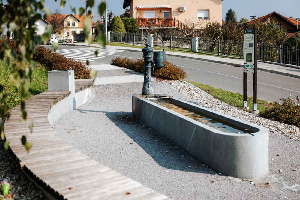Izhodišče poti je na Ponikvi v spominskem parku, kjer je posodobljeno vodno korito s fontano v spomin na nekdanje vodno korito za napajanje živine. Pot vas vodi za cerkvijo sv. Martina, kjer stoji leseni štepih (vodnjak). Mimo pokopališča na levi opazite rastlinsko čistilno napravo, ki čisti odpadne vode kraja.