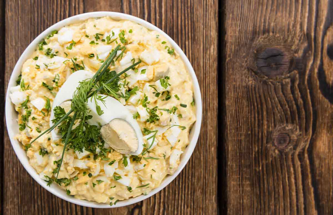Taka priloga je primerna tudi za prehrano z manj ogljikovimi hidrati, saj je polna beljakovin. Pripravimo jo tako, da trdo kuhana jajca na drobno sesekljamo, dodamo malo olja, soli in malo kisa, dodamo pa še sesekljan drobnjak, po želji pa še malo vode. Lahko jo pripravimo tudi z majonezo, gorčico in kislimi kumaricami.