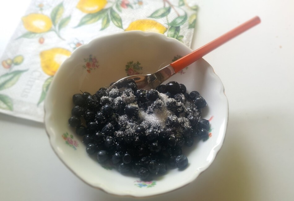 Sveže borovnice z žlico sladkorja