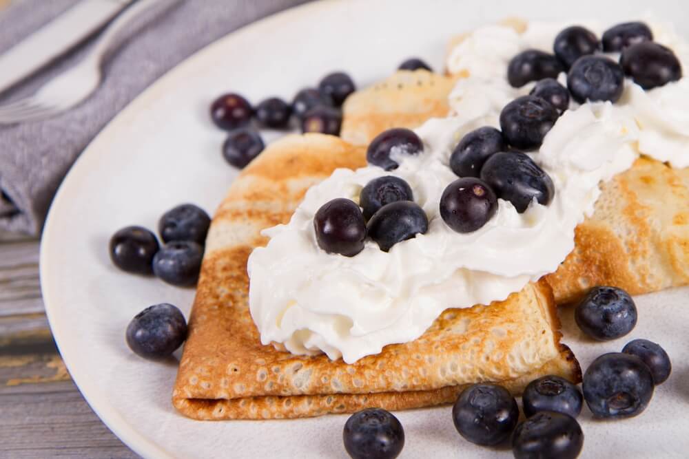 Palačinke s borovnicami in stepeno smetano