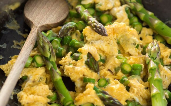 Lahka malica ali večerja: šparglji z jajci in – z ocvirki!