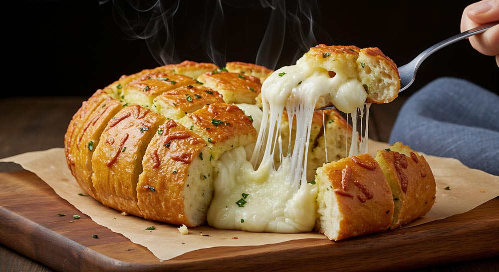 Na zunaj hrustljav, znotraj pa kombinacija stopljenega sira in pečene slanine, ki diši že na daleč. In še zabaven del: tega kruha se ne reže, ampak se ga trga!