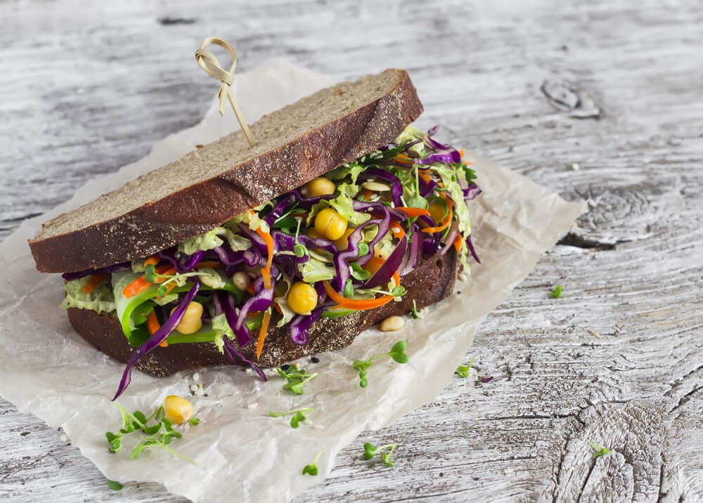 Poskrbite za dovoljšen vnos vitaminov, mineralov, antioksidantov … In da bo sendvič barvit, poln različnih tekstur in okusov. Rdeča pesa, korenje, zelenje, kalčki, semena, vložnine, surova zelenjava, kuhana in pečena, stročnice, doma narejeni polpetki iz stročnic in zelenjave, gobe, tofu … kombinacij je nešteto.