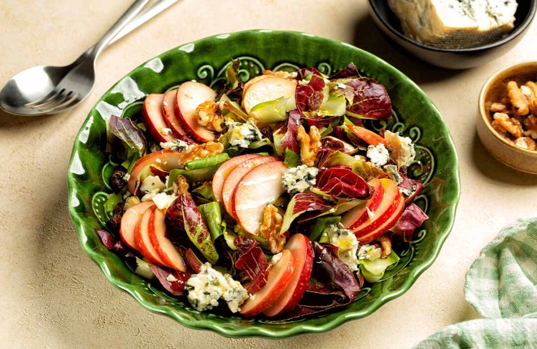 Za pripravo najboljše zimske solate je pomembno, da izberemo kakovostne, po možnosti ćim bližje lokalne sestavine – solata ne bo okusna, če bodo orehi že malce “žaltavi”.
