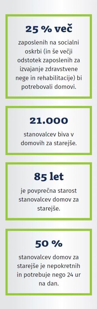 Že pred epidemijo so se domovi soočali s pomanjkanjem zaposlenih. Ponavljali so razpise za delovna mesta, na katere pa niso dobili prijav. »Tesno s tem so povezani tudi zastareli kadrovski normativi, ki ne ustrezajo več potrebam stanovalcev. Dejstvo je, da domovi potrebujejo več zaposlenih – tako na področju zdravstvene nege kot socialne oskrbe – da bi lahko odgovarjali na vedno večje potrebe stanovalcev,« povedo na SSZS, kjer ocenjujejo, da bi potrebovali približno 25 % več zaposlenih na socialni oskrbi in še večji odstotek zaposlenih za izvajanje zdravstvene nege in rehabilitacije.