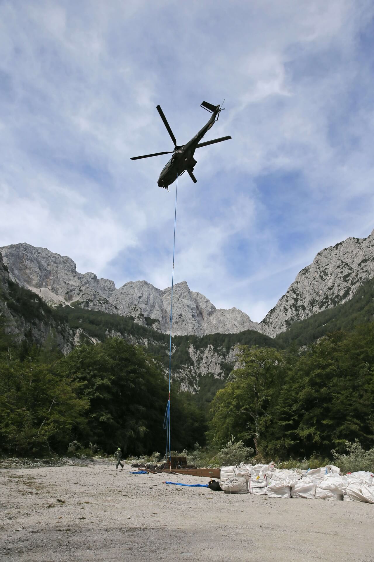 Dobro sodelovanje pripadnikov 15. helikopterskega bataljona SV in prostovoljnih planincev pri transportu materiala za novi planinski dom na Okrešlju je bilo mogoče videti tudi v sredo. Pripadniki SV so pripeljali 25 ton cementa, 14 ton armaturnih mrež in betonskega železa.