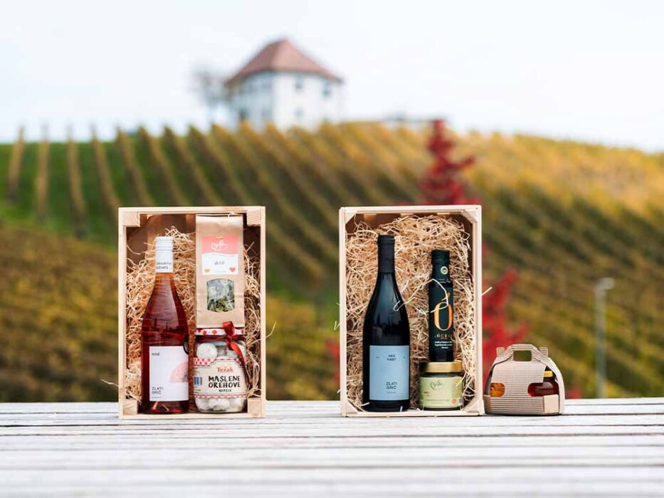 V ponudbi Zlatega griča najdete prefinjen darilni program, ki je kot nalašč za obdarovanje ob koncu leta. Na voljo je izbor buteljk vin iz vseh linij, ki jih lahko kombinirate v darilne sete ter s tem pokažete bližnjim, da jih cenite. Poleg elegantnih darilnih škatel lahko vino dopolnite še z naborom lokalnih izdelkov, ki darilo zaokrožijo na naslednjo raven ter pokažejo vaš odnos do kakovosti in tradicije.