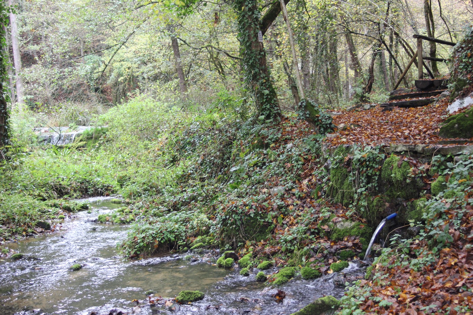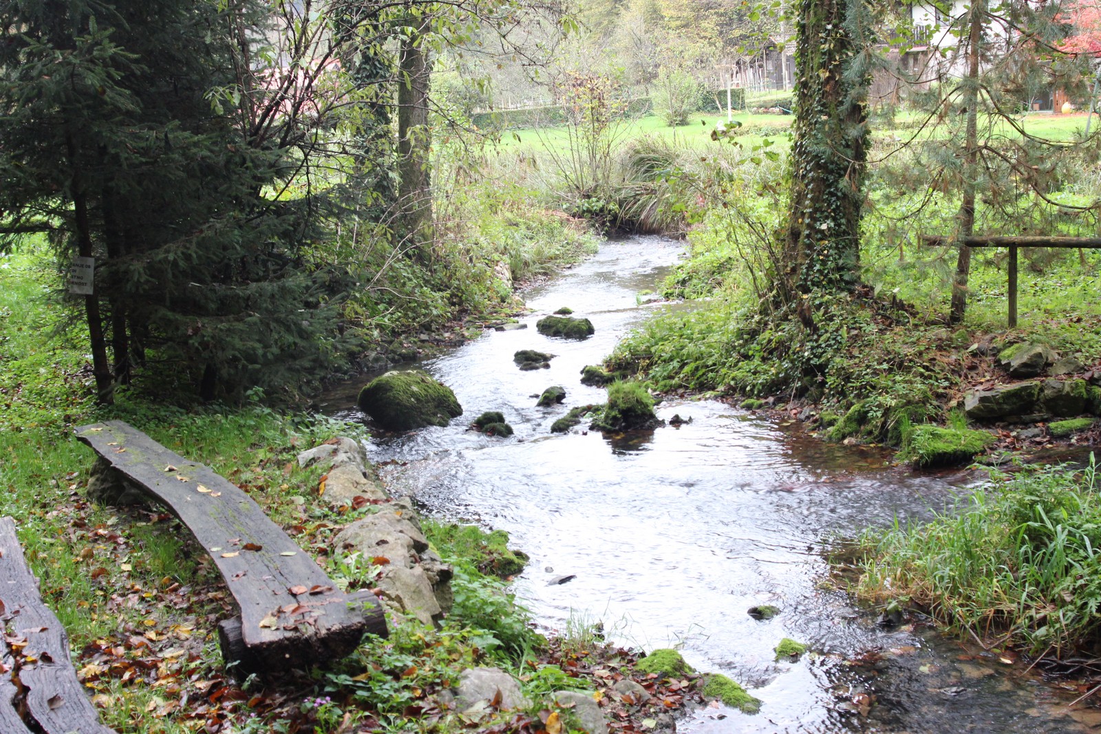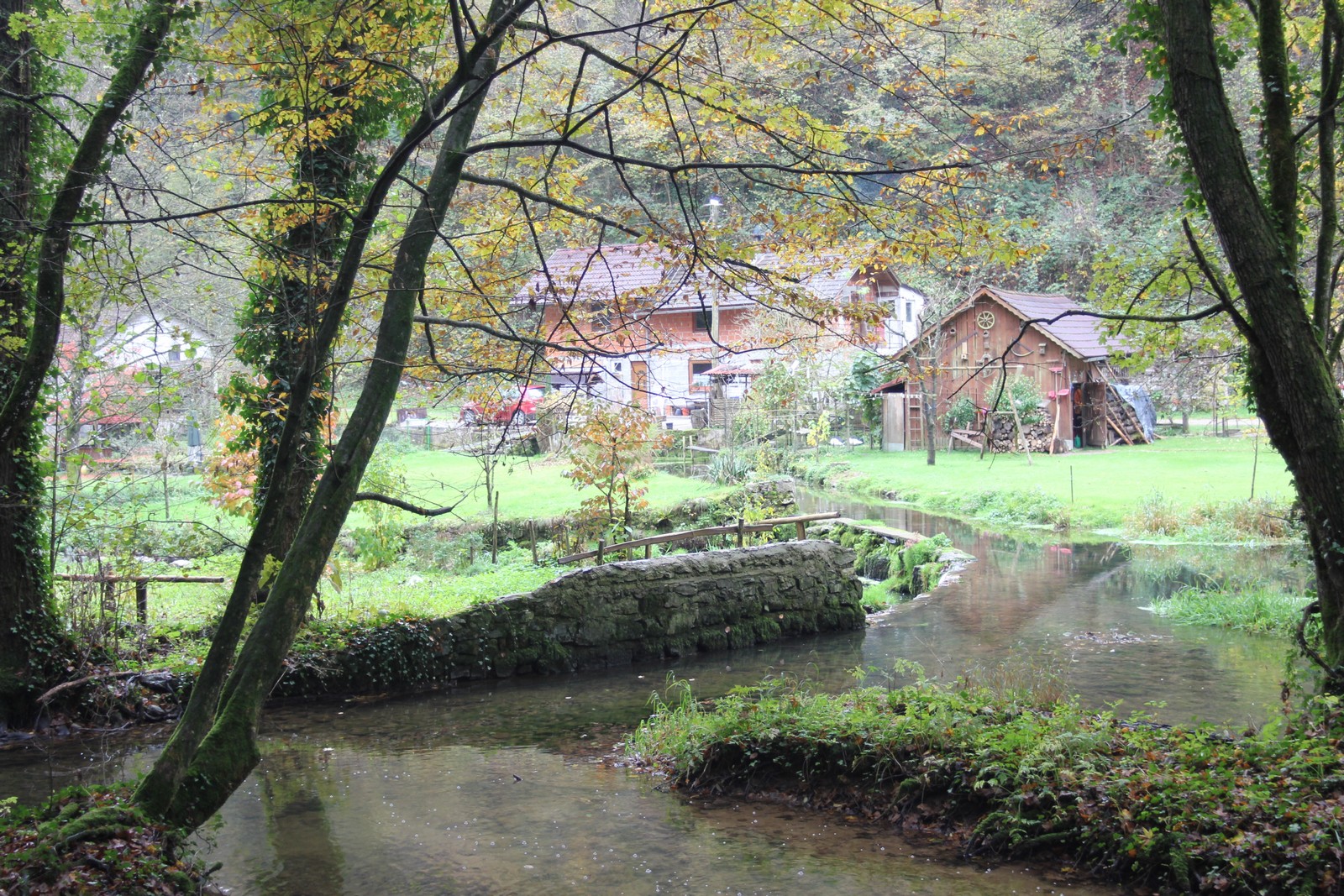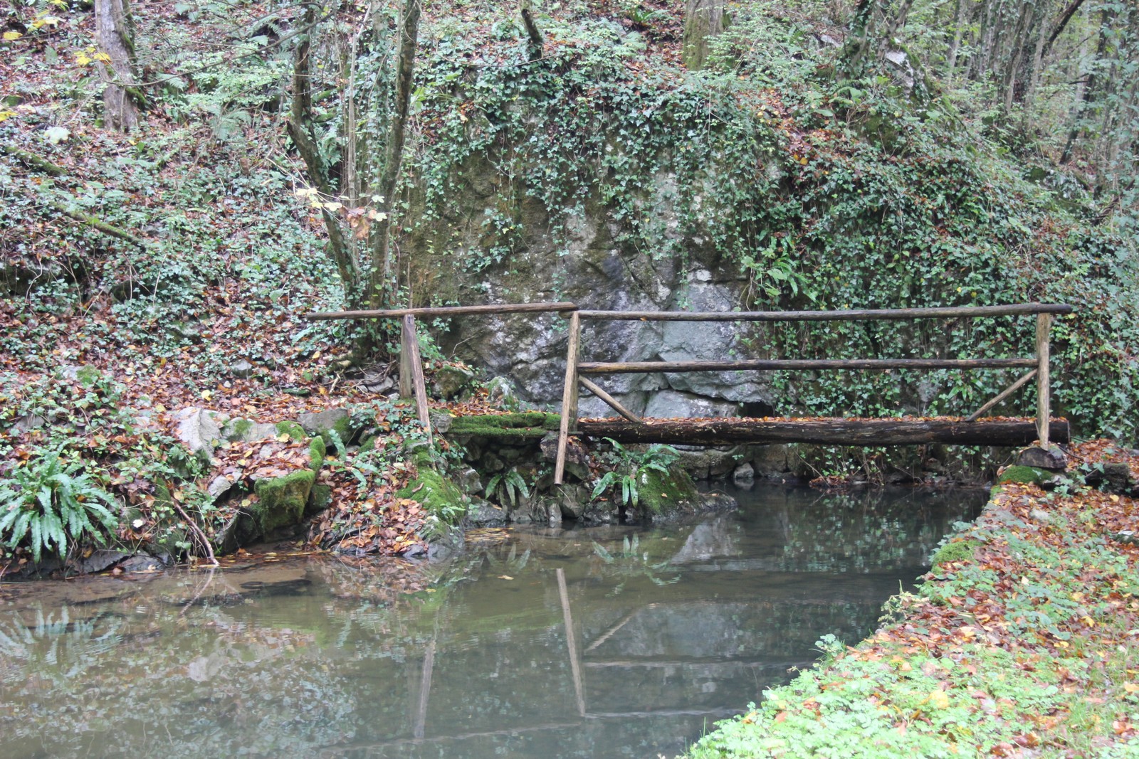 Pravzaprav v skrito dolino vodita kar dve dober kilometer dolgi cesti. Globoko dolina z rečico in obdana z gozdom je videti prav čarobna. Cesta se konča pri majhnem zaselku, ki spominja na čase, ko sta tod še delovala mlin in žaga. Na nekdanjo izkoriščanje vodne energije spominjajo jez in umetne struge. Pred mostom je urejeno manjše parkirišče, s katerega do izvira vodi označen in urejena pešpot.