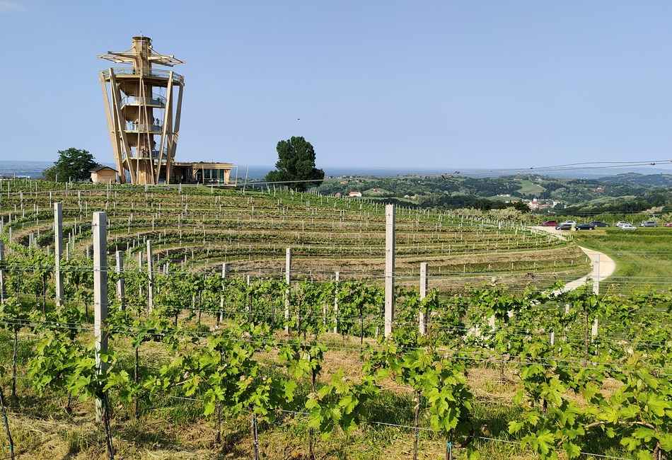Stolp me je prevzel s svojo naravno podobo, saj njegovo konstrukcijo tvorita slovenski les in steklo. Zelo lepo se poda terasasti vinogradniški pokrajini. Vzela sem si čas ter užila vse te prečudovite razglede, ki jih hudi stolp, pa tudi spodaj se človek kar ne more odtrgati od tam.