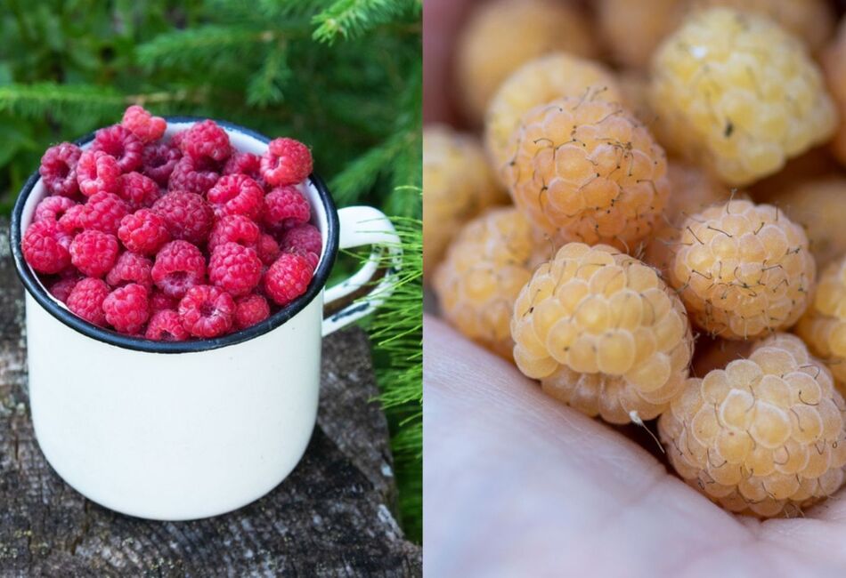 Slajše, a manj pogoste, so rumene maline. Gre za mutante rdečih oz škrlatnih in črnih sort, plodovi pa so lahko rumene, bele, oranžne ali jantarne barve. Ker so manj vpadljivih barv, jih ptiči pustijo dlje časa pri miru. Plodovi imajo tudi manj semen in so pogosto bolj sladki kot pri rdeče obarvanih sortah. Pri izbiri sorte so vedno bolj priljubljene manj trnate.