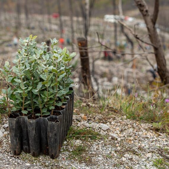Več kot 700 prostovoljcev je danes sadilo sadike toploljubnih listavcev in s tem pomagalo ozeleniti območja Krasa, ki jih je lanski julijski požar najbolj prizadel.