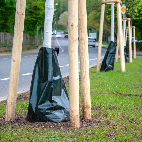 Vreče, napolnjene z vodo, pomagajo mladim drevesom v urbani suši.