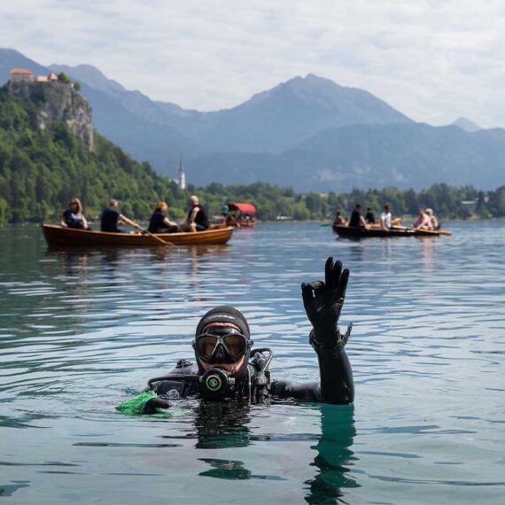 Potapljači skupaj z otroki Blejsko jezero očistili za 1/2 tone odpadkov