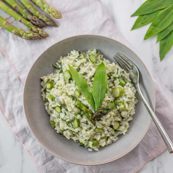 Rižota, ki kar poka od okusa in zdravja! Divji šparglji ji dajo prav poseben okus, za dodatno aromo pa poskrbi čemaž. Sestavine: riž...