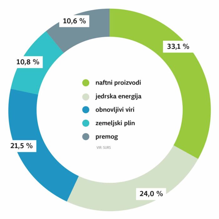 Delež energetskih virov pri oskrbi z energijo, Slovenija, 2023